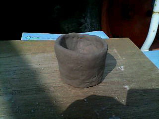 お祖母ちゃんとは全く逆で人の話やアドバイス、注意、指導は一切聞きません(笑)自分で好き勝手に作ってしまいました(笑)果てさてどうなることやら(^^;)上級者でも難しい厚さの薄い器を作ると無茶言って作りましたが、僕から見るとかなり荒が目立ちます・・・(^。^;)台から切り離した時底が薄すぎて穴がすぐあきそうで、あわてて余った粘土で補強したものの、継ぎ足しはかなり強度に不安が残ります。